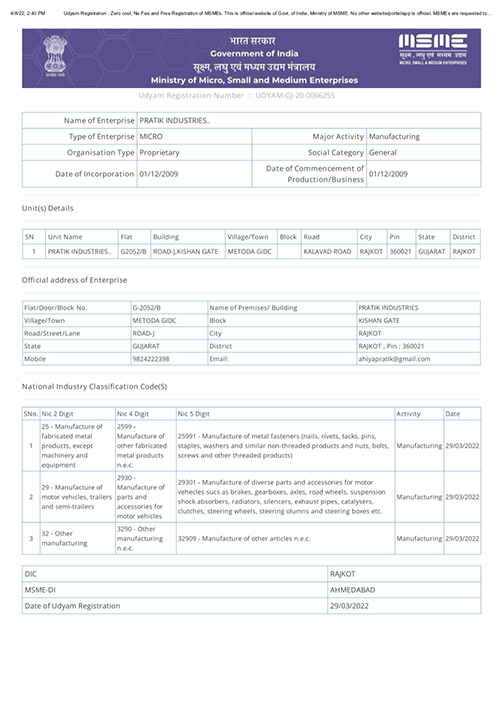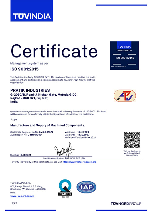 As an ISO 9001:2015 certified company, we ensure strict quality control at every production stage, supported by our skilled and passionate team. From automotive to construction industries, Pratik Industries provides dependable solutions that meet the unique demands of every client.